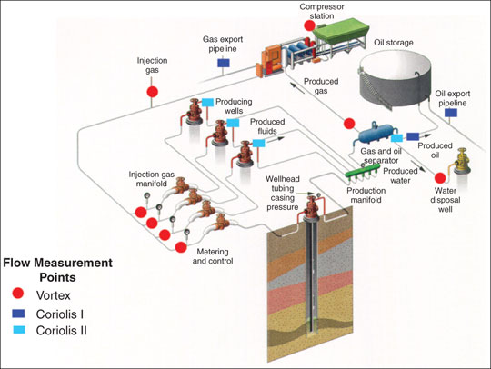 A comprehensive optimization solution includes hardware components such as vortex and Coriolis meters, remote terminal units, supervisory control and data acquisition systems, etc. But the information technology backbone for optimization functionality is software that monitors, manages and enhances the performance of wells and fields, and shows real-time production data at a glance on a single computer screen. Designed as a single-point tool to measure the operations of producing assets, the technology helps operators maximize performance by integrating real-time information from hardware and software networks to improve the overall productivity of their operations.