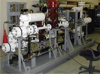 An alternative solution is to use meters that continuously measure both injection and production in real time. In a gas lift operation, for example, a vortex meter can measure and control the amount of lift agent injected, while a multiphase digital Coriolis meter can measure the two-phase production. An order-of-magnitude improvement over orifice plates and other conventional measurement devices, vortex meters can tolerate high pressures and have huge turndowns to accurately measure both very low rates as a well is being lifted off and very high rates as it reaches full production. Figure 2 shows vortex flow meters mounted on skids for use in gas lift operations.