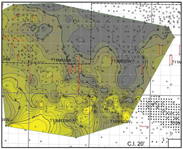 Production in the Elk City Field largely has come from vertical wells, until the past two years as operators have begun testing intervals with horizontal well bores. To date, the field has produced more than 70 million barrels of oil and 400 billion cubic feet from the Marmaton and Missourian intervals. In the 250 square-mile area covered in this article, the Marmaton C interval and the lower Hogshooter have been the main horizontal targets, with each pay zone providing encouraging results.