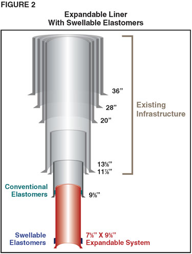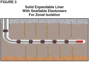 More recently, the application of a solid expandable system realized another step in adding value and further bolstered project economics. In conjunction with an operator in Canada, two solid expandable liners utilized multiple swellable elastomer sections (Figure 3). When each liner reached total depth, displaced fluid activated the swellable elastomers. The liners then were expanded and the swellable elastomers compressed between the liner and the formation.