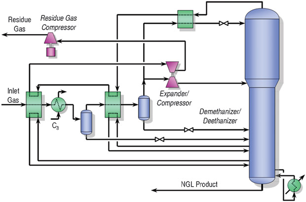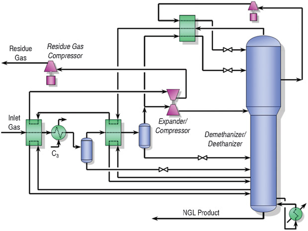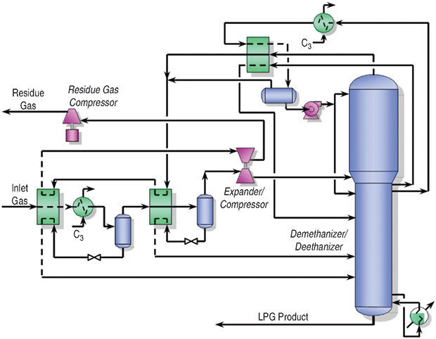 Table 3 shows the final options and performance data for the Lancaster design basis. It was obvious that an efficient propane recovery process design should be selected for the low ethane recovery end of the operating envelope, but options for the high end of the ethane recovery range also needed to be considered.