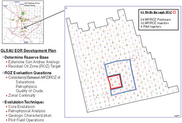 One of those companies is Legado Resources LLC, which purchased the Goldsmith-Landreth (San Andres) Unit northwest of Odessa, Tx., and conducted a detailed technical evaluation using core studies, petrophysical analysis and pilot operations before deepening existing wells to extend CO2 flooding from the main pay zone into the underlying residual oil zone (Figure 1).