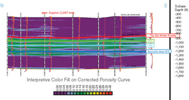 Some of the key issues in evaluating the ROZ at Goldsmith-Landreth included determining the consistency between the main pay and residual oil zones in terms of saturation (Figure 2), petrophysical variables, crude quality, zonal continuity (Figure 3) and other properties. In all cases, Cantwell reports, results indicate strong correlations between the reservoir interval above the OWC and the interval below it.