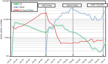 “By late 2010, we were producing 650 bbl/d,” he reports. “We have taken engineering surveys and determined that the recovery is out of both the MPZ above the oil/water contact and the ROZ below it. Industry experience has proven ROZ a valid target, so it makes sense to flood both the MPZ and ROZ at the same time. Clearly, it is more economical to get the oil as fast as you can. It is easier to work on the wells–drilling, deepening and completing–before you begin injecting CO2.”