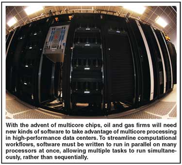 In keeping with Moore’s Law, users have come to expect computers to become more powerful and less costly each year. However, as computer makers increasingly turn to multicore chips to deliver performance, oil and gas firms will need new kinds of software to take advantage of that hardware in high-performance data centers, says Jan Odegard, executive director of Rice University’s Ken Kennedy Institute for Information Technology in Houston.