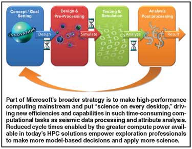 Another key application–simulation–is supported through Windows® HPC Server 2008™, which can run in a cluster environment and is designed for high availability, reports Mike Sternesky, energy industry market development manager for Microsoft. If a node fails, the system immediately rolls over to the others. System management is greatly simplified, removing complexity that would otherwise deter use, he claims.