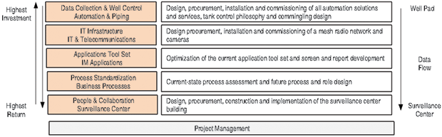 The team determined during the selection phase that the IWPP would require a holistic implementation approach supported by a cross-functional project team. Each of the five “layers” shown in Figure 1 was identified as critical for a comprehensive program. Without this complete view, solutions were likely to be partial or suboptimal.