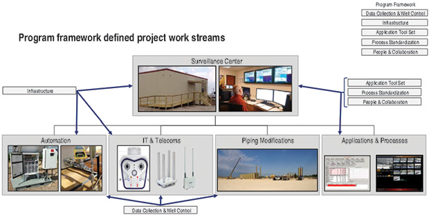 A multidisciplined team evaluated the opportunities and implemented a comprehensive program that included facility redesign, well-site automation, IT and telecommunications, and a round-the-clock surveillance center. A detailed assessment with all key stakeholders yielded a fit-for-purpose program, detailed and tailored for the specific application.