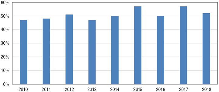 On the supply side, we will address imports first, since they are the subject of the Section 232 ruling. Since the recession in 2009, OCTG imports in good years and bad ones have provided more than half of new OCTG supply six times out of nine. In the other three years, the proportion was not much below half (Figure 2).