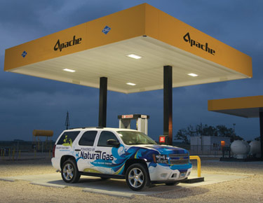 Apache Corporation is doubling the size of its CNG vehicle fleet this year and more than doubling the number of CNG stations it operates. One of the planned new stations is a CNG refueling facility for the fleet of buses that transports passengers to and from economy parking lots at Houston’s Bush Intercontinental Airport. Apache also is offering incentives to employees who convert their personal vehicles to natural gas.