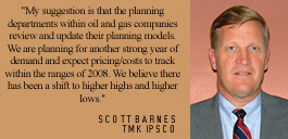 “My suggestion is that the planning departments within oil and gas companies review and update their planning models,” Barnes continues. “We are planning for another strong year of demand and expect pricing/costs to track within the ranges of 2008. We believe there has been a shift to higher highs and higher lows.”