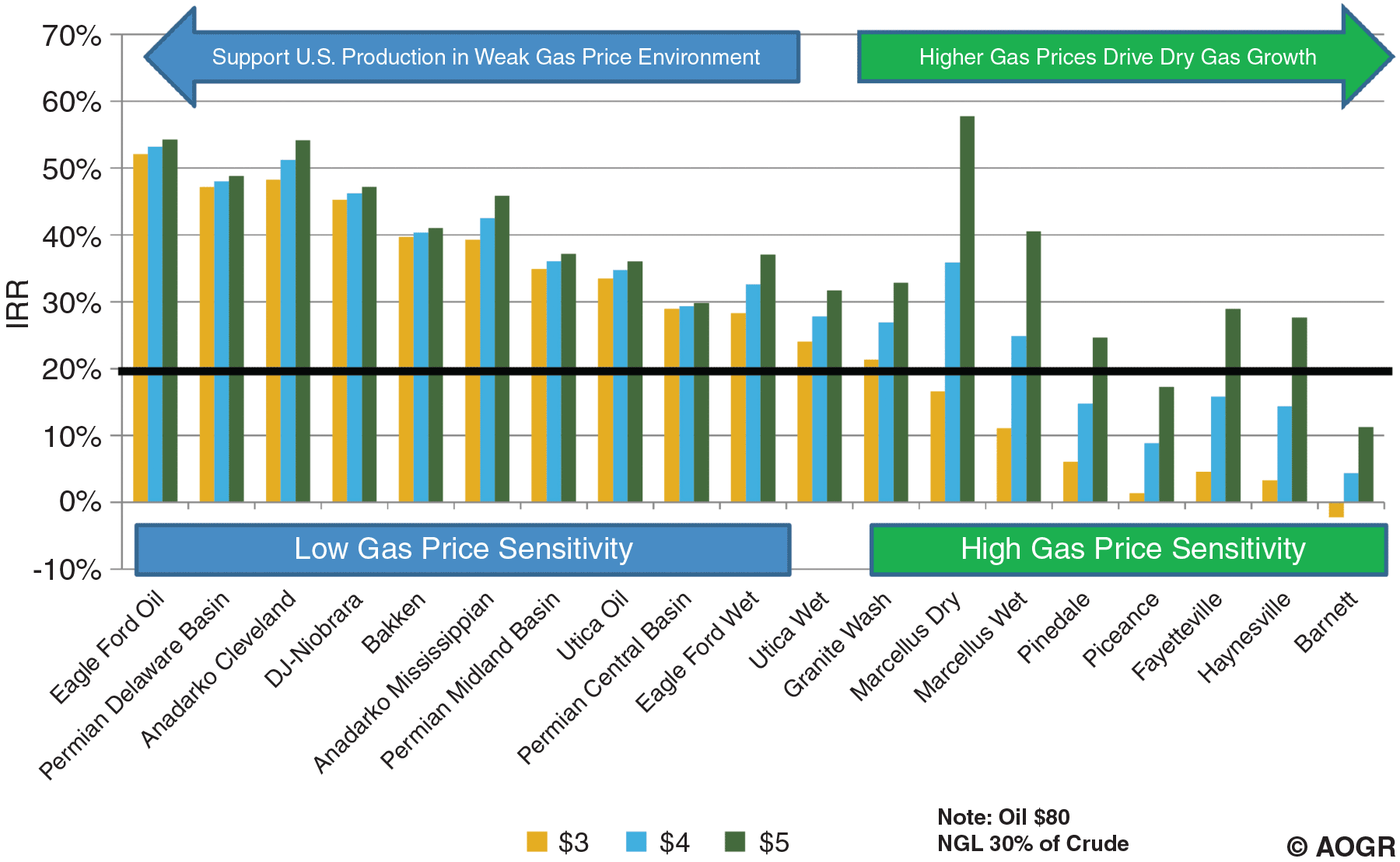 The modest price increase will have a limited effect on the economics of oil and wet gas plays, but it will increase significantly the profitability of dry gas shale plays such as the Fayetteville, Haynesville and parts of the Marcellus. By 2018, rates of return in these plays should exceed 20 percent, enough to justify additional drilling (Figure 1).