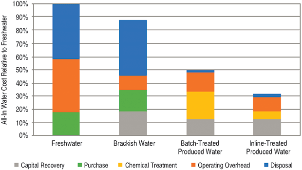 With the right infrastructure, using alternative water sources makes economic sense by resulting in less transportation and disposal costs. In fact, the total cost of alternative water sources can be significantly lower than the all-in cost associated with using freshwater, as shown in Figure 1.
