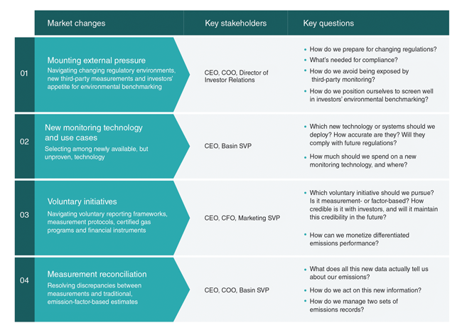 With these industry standards only beginning to emerge, methane emissions are no longer exclusively the purview of localized operational teams, but rather, the basis of strategic questions keeping executives up at night.