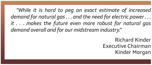 “While it is hard to peg an exact estimate of increased demand for natural gas as a result of all of this growth and the need for electric power, we believe it will be significant and makes the future even more robust for natural gas demand overall and for our midstream industry,” he says.
