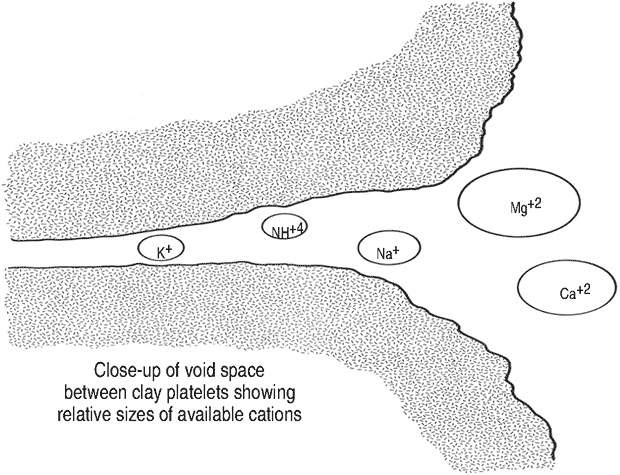 Clay fixation usually is done by the cation associated with the brine. The most effective cation is the potassium ion (K+). The hydrated size of the K+ ion seems to be the best size to fit into the pore openings of most shales (Figure 6).