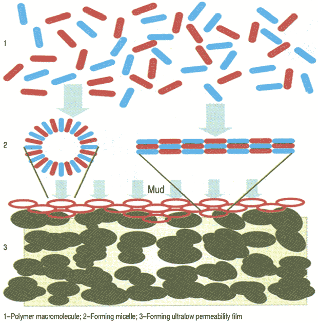 Most drilling fluid polymers are film formers to some extent, but partially-hydrolyzed-polyacrylamide is the most common. Another set of chemicals used for film forming are polyols and multihydroxy alcohols, which are very successful and work by hydrogen bonding with the shales.