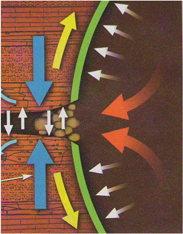 A joint industry project initiated in the 1990s targeting lost circulation and wellbore ballooning has resulted in a much greater understanding of those problems and how to use drilling fluids to strengthen the borehole. Researchers learned there is a difference between WBMs and NADFs in the pressures needed to propagate a fracture once it is initiated. Wellbore ballooning describes the effect of creating a series of microfractures in the wellbore that expand and close in response to ECD (Figure 8A).