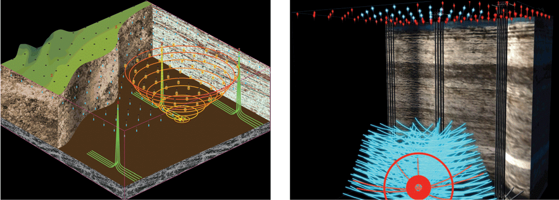 He says, “These are typically passive listening devices that record events that occur during fracturing jobs or during production. The geophones detect microseismic activity, which can be interpreted in terms of pressure changes, fluid changes and sweeping fronts of liquids. There is no need to drill observation wells, because the geophones are emplaced permanently to ensure that recordings are perfectly repeatable for time-lapse 4-D monitoring.”