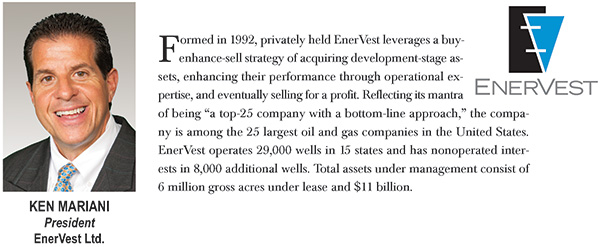At the same time, EnerVest is optimizing its internal processes. “With the reduction in activity, our company is focused on enhancing major systems,” Mariani relates. “For example, we are converting our land and accounting system to a higher-powered platform that will allow us to grow more efficiently from a back-office support standpoint.”