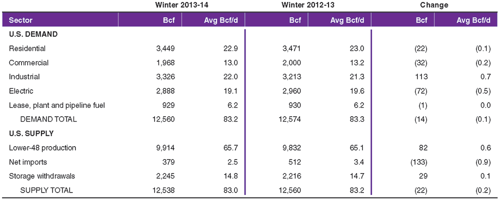 To put it simply, natural gas demand for winter 2013-14 should be about the same as last winter. In fact, for all practical purposes, the outlook for both supply and demand looks very similar to last winter. However, this overall assessment is the net result of several offsetting variances.