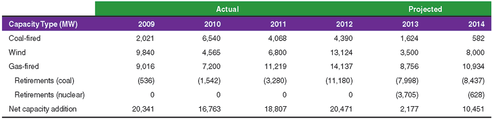 As illustrated, gas-fired, combined-cycle capacity additions are expected to total more than 30,800 units from 2012 to 2014, up substantially from about 19,000 in the three prior years. New coal plants will be limited to a few units that are either under construction or have been fully permitted. More significant is the level of retirements of coal-fired facilities as a result of both environmental regulations and the inability to compete economically with gas-fired generation.