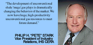 “Anyway one cares to looks at it, U.S. gas producers certainly have the capability to generate a supply bubble. As unlikely as that would have sounded a few years ago, when the concerns were all about supply tightness, the development of unconventional shale ‘mega’ gas plays is dramatically changing the behavior of the market. We now have huge, high-productivity unconventional gas resources to meet future demand,” responds Philip H. “Pete” Stark, vice president of industry relations for IHS CERA in Englewood, Co.