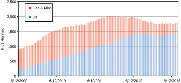 All these positives should have the OCTG industry feeling euphoric, but the market does have (and always has had) a “what have you done for me lately” mentality. Over the past 12 months, the U.S. rig count has slipped by 123 rigs from 1,914 in the third week of August 2012. The expected decline in activity we wrote about in the September 2012 issue of “The American Oil & Gas Reporter” certainly has come to pass. However, despite the market’s retraction since late last summer, we continue to believe the future is bright from an OCTG consumption perspective.