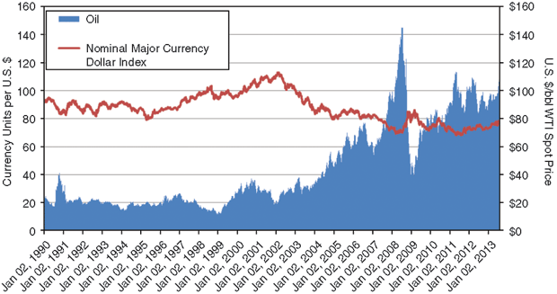 The chart in Figure 1 attempts to demonstrate this, showing the relationship between U.S. spot oil prices and the strength of the dollar since the beginning of 1990. What this chart cannot show clearly is how much a weakened U.S. dollar contributes to the oil price makeup. Over the rest of this year and most of next, we expect modest growth in natural gas prices and modest declines in oil prices. In time, we expect lower-48 drilling activity ultimately to shift back toward natural gas. We do not anticipate this happening right away, since some of the natural gas demand factors will take time to contribute significantly to consumption.