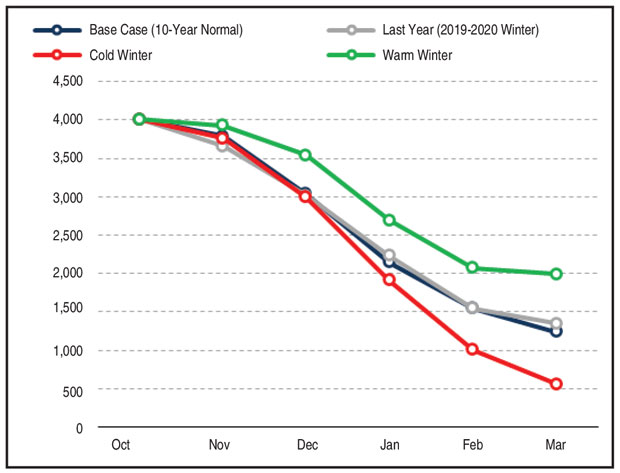 Historically, the weather has been the biggest wild card in projecting how supply and demand may balance during the course of a November-to-March heating season. This winter started with one of the warmest Novembers on record, but the coldest potential months with peak demand are still ahead and the long-range forecasts call for colder temperatures than last year. However, this winter is especially unpredictable with the effects of the COVID-19 pandemic.