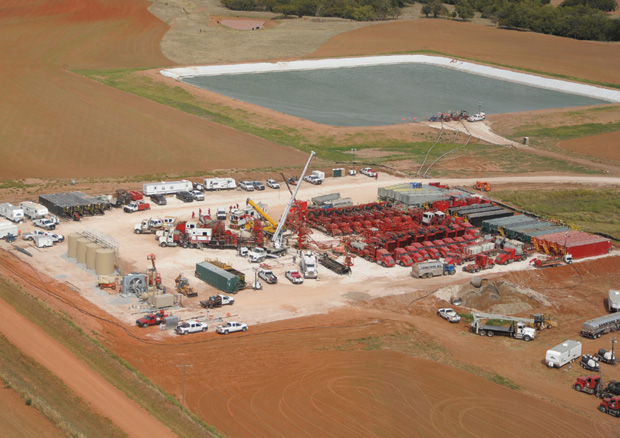 Fracturing volumes on the vertical wells were generally less than 10,000 barrels and could be done from frac tanks or a small freshwater pond. To achieve higher producing rates from the Woodford Shale horizontal wells, much larger fracture stimulations with volumes increasing up to 300,000 barrels a well were required. Some of Newfield’s four-well pads have used as much as 1.2 million barrels of water during completion operations.