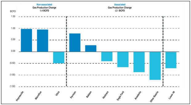Despite a steady, but cautious response from producers as natural gas prices strengthened over the summer months, sustained stronger prices will likely translate into increased investment in new development projects, especially for independent gas-centric producers. The Winter Outlook forecasts the production response to higher market prices for both natural gas and crude oil to result in a 4% winter-over-winter gain in total natural gas production (associated and nonassociated).