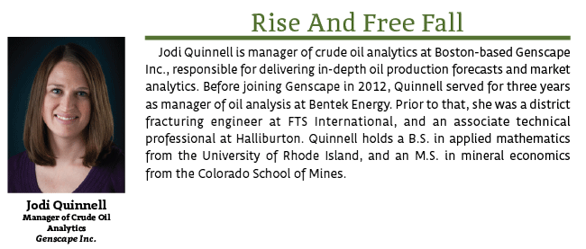QUINNELL: There are more established areas such as the Bakken Shale, where it seems the industry has hit the top end of productivity gains, and where it is becoming harder and harder to improve efficiencies. Initial production rates have leveled over the past several years and drilling days per well have improved only marginally. However, operators in Permian Basin tight oil plays are still seeing significant increases in productivities as a result of the more recent uptick in horizontal activity, which continues to yield higher initial production rates from new wells.