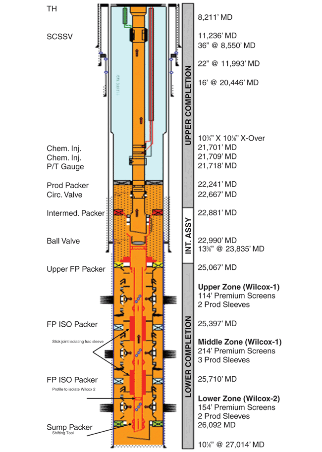 Two other long-term changes are modifying the STMZ equipment to accept intelligent completion equipment to segregate production from the Wilcox 1 and Wilcox 2 reservoirs, and modifying the system to work in open-hole completions to save considerable time and cost by eliminating the need to run, cement and perforate a production liner.