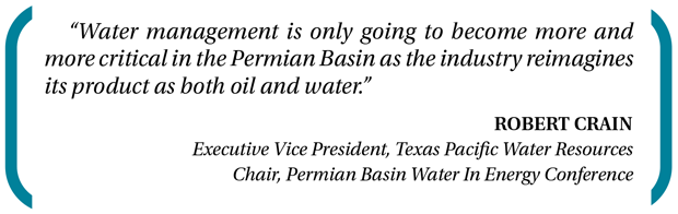 “Water management is only going to become more and more critical in the Permian Basin as the industry reimagines its product as both oil and water,” Crain suggests.