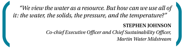 “We view the water as a resource,” Johnson states. “But how can we use all of it: the water, the solids, the pressure, and the temperature? If you are having to step down the pressure, that is a waste of energy. Most of the focus is on what to do with the water itself, but when you do the arithmetic on the solids, how many tons are going to landfills to never be used again?”