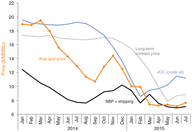 The international LNG market has experienced dramatic change in recent years. LNG demand spiked in Japan, already the world’s largest LNG consumer, in the aftermath of the 2011 Fukushima nuclear disaster. By early 2014, Japanese and other Asian buyers were paying more than $18 an MMBtu for LNG, partly because long-term supply deals were indexed to then-high crude oil prices and partly because LNG demand was outstripping supply.