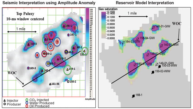 In applying the CO2 EOR process, it is necessary to determine the CO2 migration paths and CO2 utilization ratio for assessing economic viability of CO2-enhanced oil recovery projects. Time-lapse (4-D) seismic mapping, combined with reservoir simulation, is the front-runner technique for geoscientists to evaluate these issues. Reservoir simulation is the primary tool for reservoir engineers to predict dynamic reservoir performance, while 4-D seismic combined with reservoir simulation is a higher-level technology for managing the reservoir and maximizing oil production.