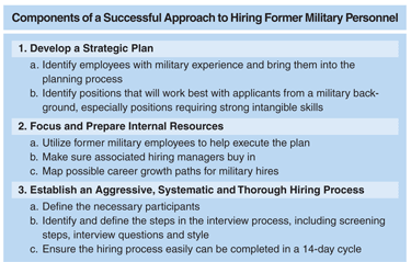 Once the strategic and operational groundwork is set, it is time to execute a hiring plan that features a trio of characteristics common to military candidates. It must be: