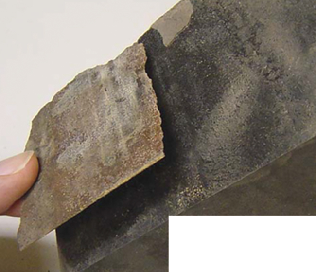 It is also important to recognize that even when closed, natural fractures may open before the rock actually fractures. Research conducted by Julia Gale at the Bureau of Economic Geology at the University of Texas found that natural fractures open at 50-60 percent of the pressure required to create a fracture in the non-naturally fractured rock. Even when the natural fractures appear filled with calcite, the fractures could be opened easily since calcite does not bond tightly to silica (Figure 3).