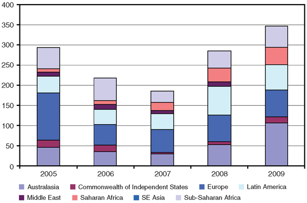 Financing changed significantly for independents–particularly startups–over the past few years. Before the global economic downturn hit in 2008, the NOCs had become very aggressive, both within their home countries and outside of them. It largely remains to be seen how capital constraints will impact access to acreage or an independent’s ability to enter into a new international market. Certainly for 2010, those companies with financial muscle will have a competitive advantage.