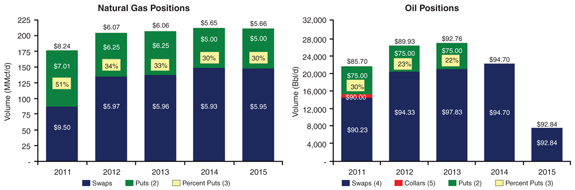 In addition to allowing upside, the puts mitigate the risk that swaps would pose during extreme price upswings. “In exchange for a payment equal to the price we want to lock in, swaps require us to pay the financial institution based on an indexed oil price,” Rockov notes. “Risks include the price of oil skyrocketing, or the company producing less volume than expected. Puts alleviate both risks because they allow us to benefit from high prices and are only options, not obligations.