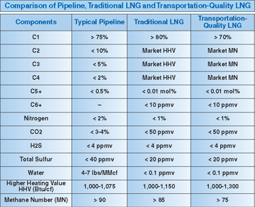 In many cases, there is no convenient pipeline or market for the C2 that has been removed. This can create logistical problems for the gas producer. If the gas is sold as “transportation fuel grade” LNG, the ethane may be left in the fuel to improve the overall economics, capital cost and product logistics. In all cases, the fuel composition limits should be specified in the fuel supply contract.