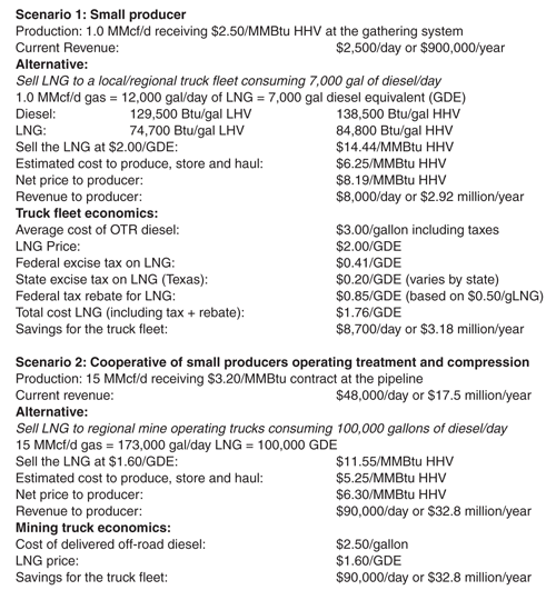 Liquefied natural gas and compressed natural gas already are being used as transportation fuels, paving the way for producers to participate in this growing market segment. Consider the potential for small producers to enter the transportation fuels market and sell natural gas to truck fleets at a significant discount to diesel.