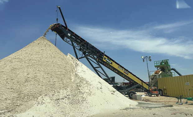 Once the sand is on site, it is separated from the water and stored until it’s needed, at which point a loader transfers the sand from storage to the on-site metering system. The process is so streamlined that a single person can manage it.