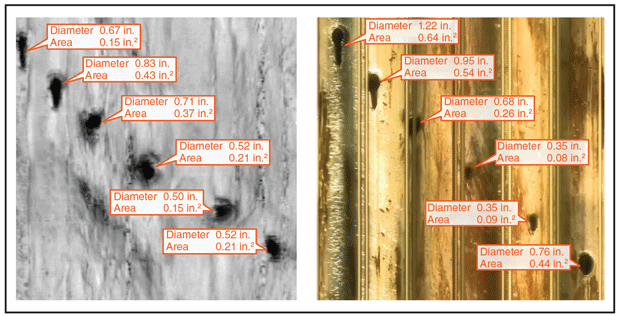 Both wells included some untreated base holes, providing in-situ dimensions used as a reference to calculate the eroded area of the treated perforations. In these early wells, video footage was recorded as the tool string descended into the wells, with ultrasound data acquired over the same stages as the tool string was retrieved. Today, both datasets are acquired simultaneously while entering or pulling out of the well, as that saves time and reduces costs for the operator.