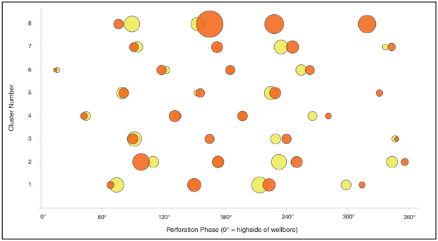 With a more precise understanding of treatment distribution, operators can compare the performance of various treatment and stage design parameters. This technique has been used widely to optimize critical variables such as stage length, the number of clusters in each stage, the number of perforations in each cluster within a stage, and the size and type of perforating charge. It even has helped operators identify the best perforation charge phase positions.