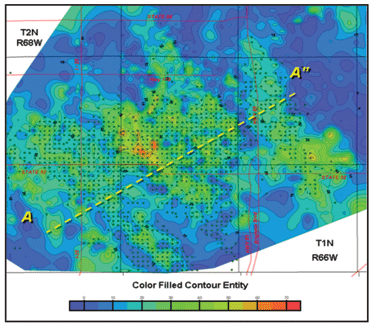 The attribute maps generated from the petrophysical model have led to a series of successful uphole recompletions in the Terry reservoir. The recompletion opportunities are accelerating the resource development and reviving an otherwise depleting field area. Results to date show excellent reservoir performance with initial production correlating favorably with the attribute maps. Applying the petrophysical model to the Terry reservoir in adjoining fields could enhance the commercial value and extend the life of maturing assets in the greater Wattenberg area.