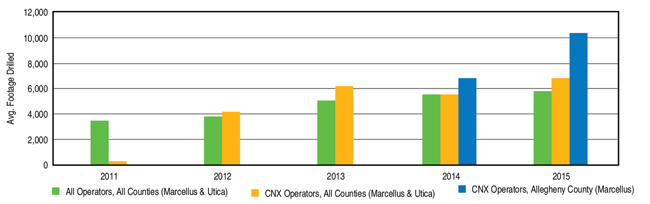 CONSOL Energy has been using HBRSS technology since 2011 in Pennsylvania, Ohio, and West Virginia. Honing its skills by collectively drilling more than 1 million feet led to establishing best practices. Figure 4 shows the company’s evolution in terms of average footage drilled, illustrating the step change accomplished on PIT wells to expand the technology’s technical limits.