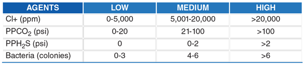 - High levels of Cl+ are not enough to qualify a corrosion level in the absence of an agent (CO2, H2S or bacteria);